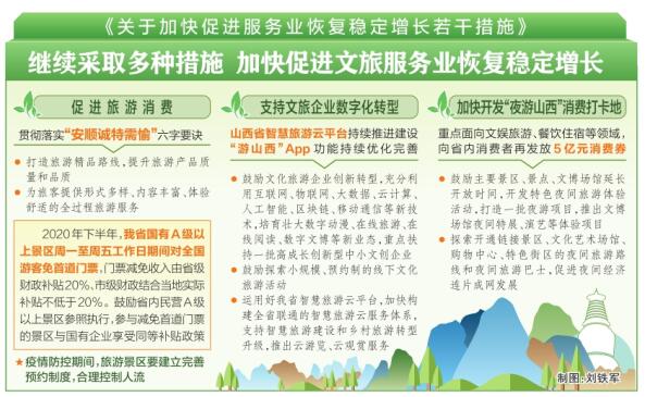 《关于加快促进服务业恢复稳定增长若干措施》(以下简称《若干措施》)很重要一部分内容是提振旅游市场。主要包括三条具体措施,即促进旅游消费、支持文旅企业数字化转型、加快开发“夜游山西”消费打卡地等方面。围绕以上内容,我省将继续采取多种措施,更有力地提振全省文化旅游市场人气,加快促进文旅服务业恢复稳定增长。