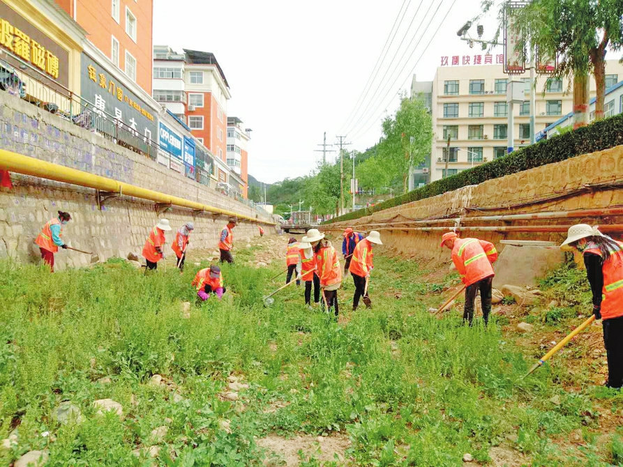 晋城市不断强化环境综合整治,营造整洁、卫生、健康、宜居生活环境。图为沁水县组织环卫工人清理整治河道。葛鹏飞摄