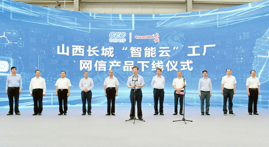 10时许,楼阳生、林武、芮晓武等共同按下启动键,标志着“智能云”工厂网信产品正式下线。楼阳生在讲话中代表省委和省政府,向中国电子对山西发展的大力支持表示感谢,向“智能云”工厂项目顺利下线表示祝贺。他指出,山西长城“智能云”工厂项目正式下线,标志着我省在打造信创产业生态、推动信创产业集群发展上取得重大突破,对山西加快培育壮大新动能、助力转型发展具有重要标志性意义。他强调,习近平总书记今年5月视察山西时对打造创新生态提出新的更高要求,鲜明提出要在新基建、新技术、新材料、新装备、新产品、新业态上不断取得突破,这是总书记关于创新驱动发展战略的最新理论成果,为山西以创新驱动高质量转型发展指明了前进方向,提供了根本遵循。信创产业作为我国拥有自主产权和核心竞争优势的重要产业,技术领先、市场巨大、前景广阔。中国电子集团是中国网信产业的国家队、硬支撑,在科技研发、智能制造、市场开拓、人才汇聚等方面具有强大实力和显著优势,不仅是我国网信产业的支柱力量,也正在成为支持山西转型发展、发展网信产业的重要战略合作伙伴。我省要持续把信创产业作为“一号工程”、战略工程来抓,围绕全力打造14个战略性新兴产业集群,以龙头企业和重点项目为牵引,集聚先进要素,加强研发创新,进一步补链延链强链,做大产业规模,推动集群发展,打造制造基地,为山西高质量转型发展注入强劲动能。各级各部门要强化政策扶持保障,提升精准服务水平,为企业提供保姆式、全程式优质服务,推动山西信创产业做优做强。