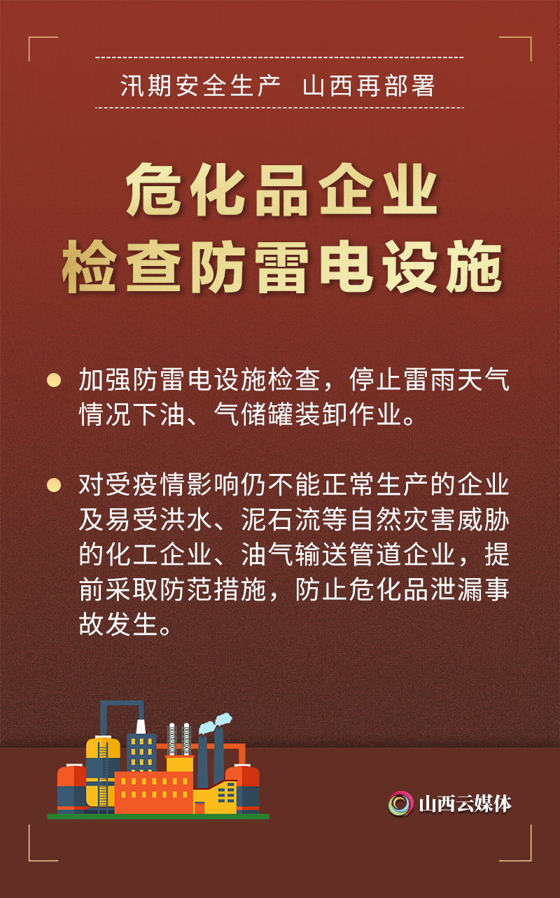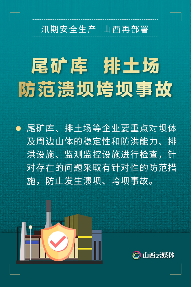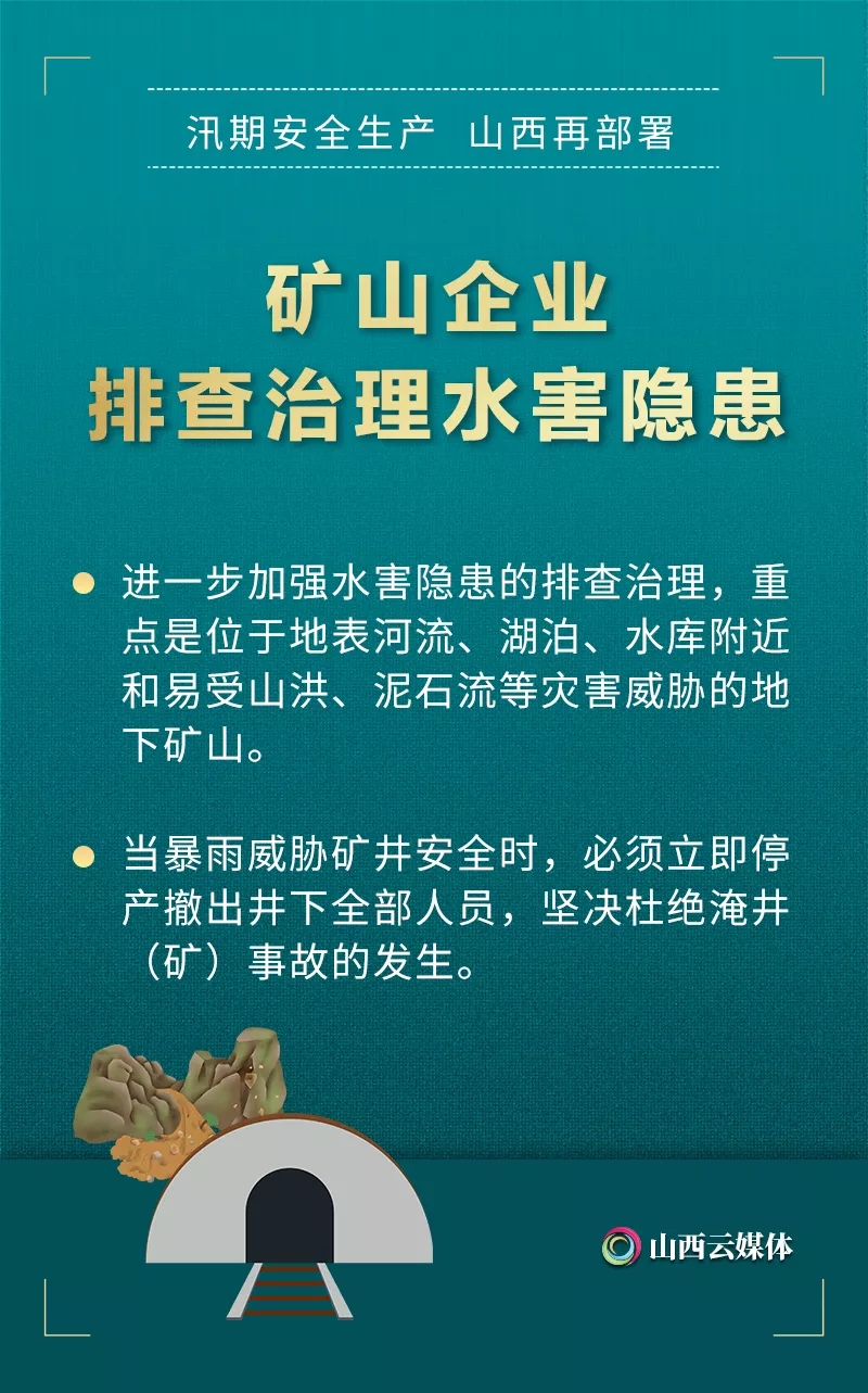 7月下旬,山西将进入主汛期,全省安全生产形势严峻复杂。近日,山西下发《关于做好2020年汛期安全生产工作的通知》,对汛期安全生产工作进行再部署、再检查、再推动、再落实。