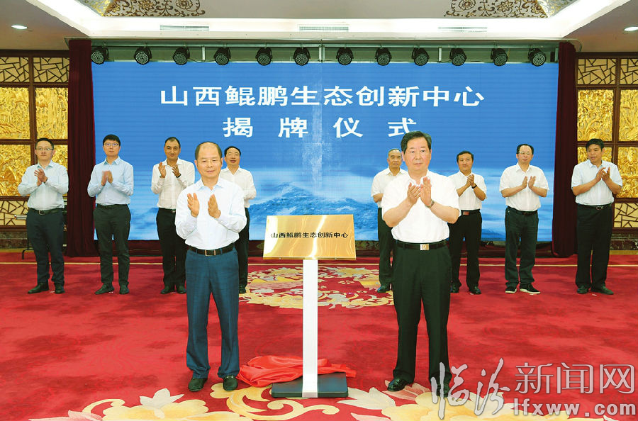七月二十九日,省委书记楼阳生与华为公司轮值董事长徐直军共同为山西鲲鹏生态创新中心揭牌。本报记者李联军摄