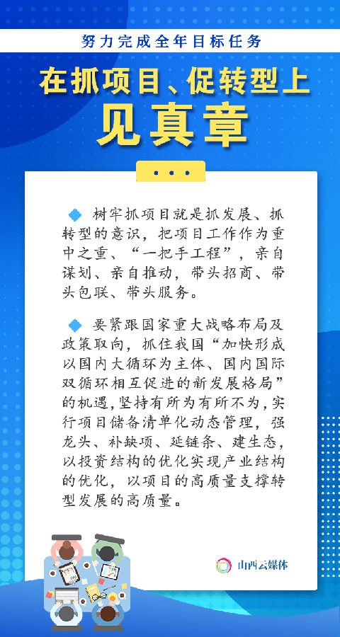 8月8日,全省开发区项目签约一批、开工一批、投产一批“三个一批”活动在全省各地同步举行,省委书记楼阳生出席省主会场活动并讲话。他强调,要深入学习贯彻习近平总书记视察山西重要讲话重要指示,按照省委十一届十次全会部署,咬定转型不动摇,坚定创新不松劲,千方百计抓项目,形成合力促落实,以一个个新项目好项目大项目夯基垒台、积厚成势,汇聚高质量转型发展的磅礴力量。