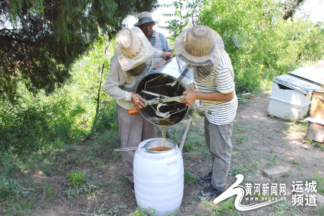 “从我爷爷那辈起,我家就开始养蜂,不过那个时候规模小,挣不下啥钱,只是积攒了一些养蜂的经验。”李永辉一边搅蜜一边笑眯眯地说。