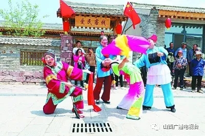 宋家沟村的文艺爱好者为游客表演晋西北特色民俗——秧歌。