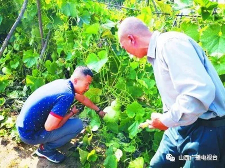 山西省总工会派驻宋家沟村第一书记杨涛(左)帮助村民引进葫芦种植,以丰富旅游产品。光明日报记者 李建斌摄
