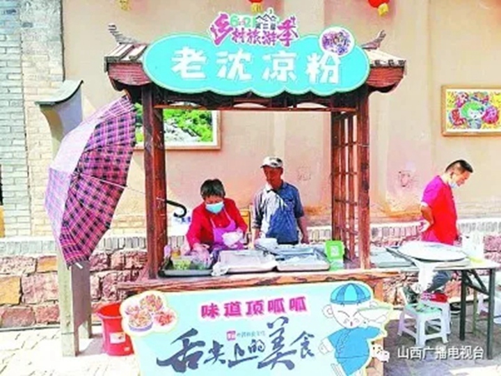 64岁的沈姚付曾是与宋家沟隔河相望的口子上村的贫困户,以前一家人挤在两孔年龄比他自己还大的土窑洞里,过着靠天吃饭的日子。2017年5月,他们一家搬进了宋家沟村独门独院的新四合院。看到来村里游玩的人多了,精明的沈姚付和老伴在村里支起了第一个凉粉摊。如今,他们一年的收入是过去的七八倍,顺理成章摘掉了穷帽子。