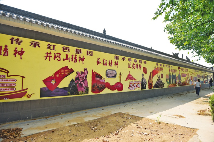 闻喜县晋华实验学校内的爱国主义教育文化墙。