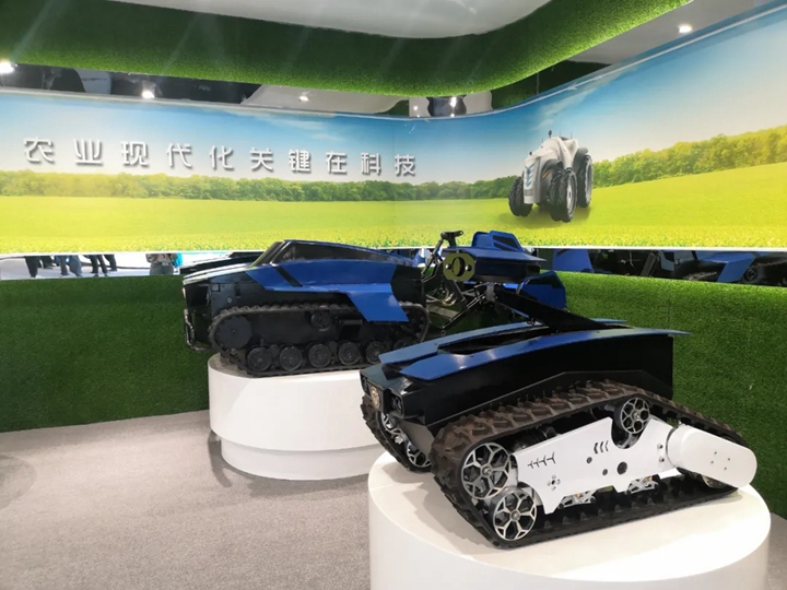 ▲科创基地展示的无人驾驶拖拉机、智能巡检机器人等装备,可大幅提高工作效率