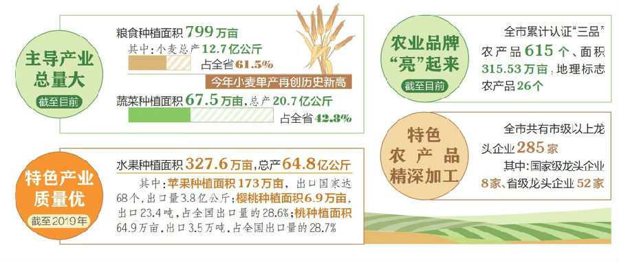 作为农业大市,运城的粮食、棉花、水果、蔬菜等农产品的种植面积和产量,常年位居我省第一,有“山西乌克兰”之称。近年来,当地大力发展现代农业,创建了1个国家级现代农业产业园和5个省级示范园区,加快推进果业出口平台建设,打造北方水果最佳生产区,水果种植面积和产量居全国地级市前列,果品出口68个国家和地区。作为中华农耕文明重要的发祥地之一的运城,如今打造现代农业新标杆底气更足了、家底更厚了。