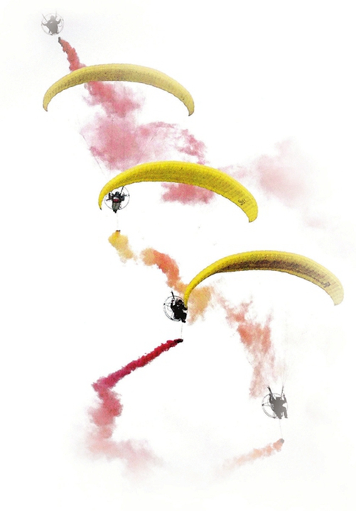 动力滑翔伞拉烟表演。