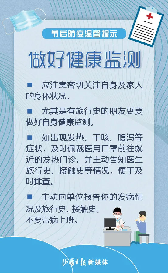 轻伤不下“火线”,小病从不就医,相信不少人都曾有过这样的经历。8天小长假卸下了身上的疲惫,也容易卸下对疫情防控的警备,对此,疾控部门提醒:节后有这类症状的人一定不要硬“扛”,不要带病上班、上学。
