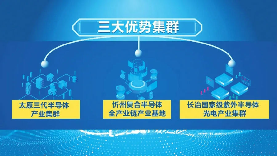 今年我省出台了《山西省半导体产业集群创新生态建设2020行动计划》,布局三大优势集群、五大创新链条,初步搭建起半导体产业集群的创新生态。三大优势集群即太原的三代半导体产业集群、忻州的复合半导体全产业链产业基地以及长治的国家级紫外半导体光电产业集群。五大创新链指的是:以碳化硅半导体衬底材料、三代半导体器件为重点,打造三代半导体产业链;以射频功率放大器、声表面波滤波器为重点,打造微波半导体产业链;以深紫外LED芯片、LED封装及显示产品为重点,打造光电LED产业链;以短波红外探测芯片等为重点,打造红外光电产业链;以图形化蓝宝石衬底制造为重点,打造蓝宝石材料产业链。