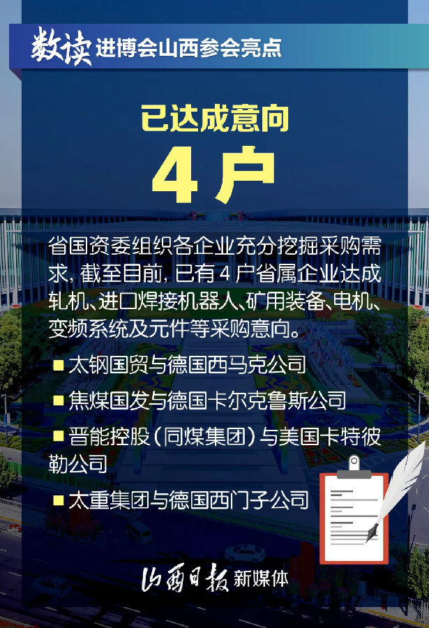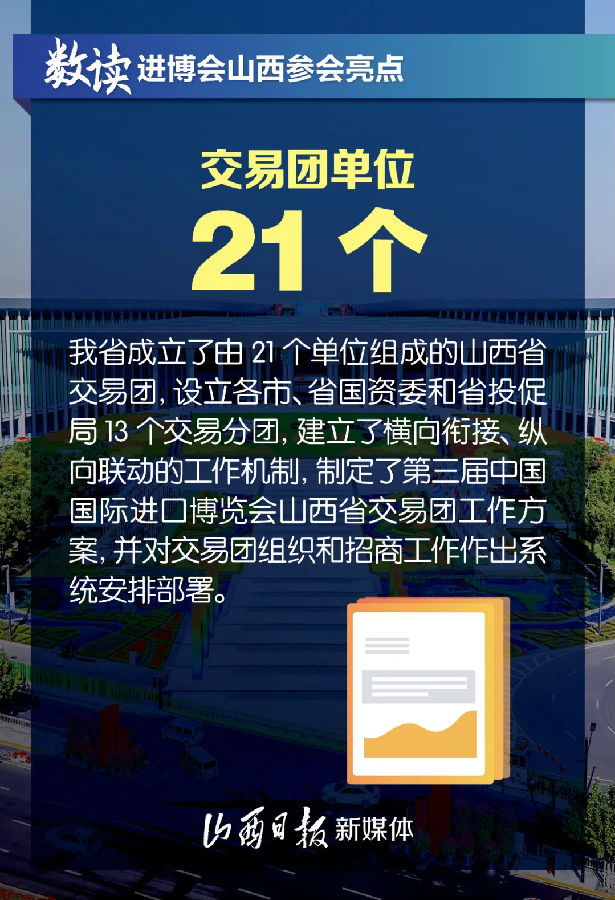 山西抢抓开放机遇,体现山西作为,将在进博会期间举行采购、洽谈、招商等丰富多彩的活动。在引进全球优质商品的同时,积极对接国外参展商,努力加强国际合作,助力全省高质量转型发展。