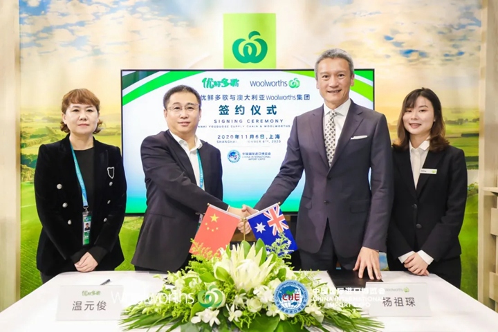11月6日,山西优鲜多歌供应链有限公司与澳沃氏(Woolworths) 集团签约。此次签约的澳沃氏集团与山西优鲜多歌进口包装食品合作项目,是本届进博会太原交易分团的一个重要成果。