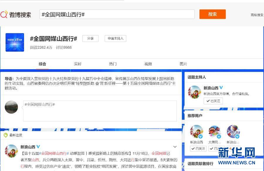 从11月16日至20日,全国网媒齐聚山西,兵分两路深入太原、晋中、吕梁、忻州、朔州、大同进行集中采访报道,“全国网媒山西行”话题在微博上阅读量超2000万次。新华网 发