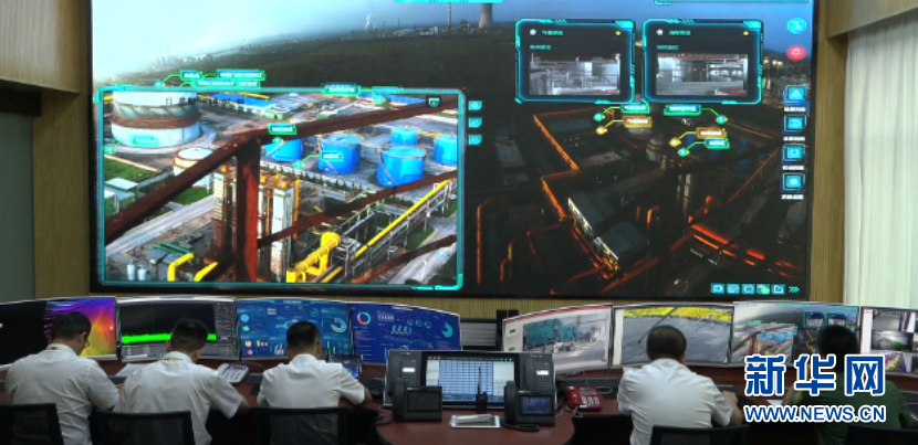 山西鹏飞集团大屏幕上实时展示的有关监控画面。新华网 发