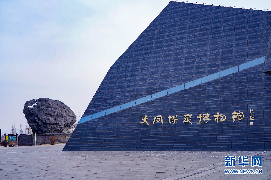 国家矿山公园中心位置的大同煤炭博物馆,总建筑面积8000平方米,东西长108米,南北长45米。建筑外形为深蓝色矿物晶体的形状。