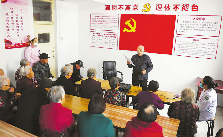 11月26日,稷山县离休干部秦守义在社区老年护理院宣讲五中全会精神。连日来,稷山县老干部局组织广大离退休干部学习、争当五中全会精神宣传员和辅导员,通过群众喜闻乐见的形式把五中全会精神送到百姓家中。栗卢建摄