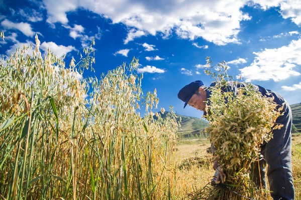晋西北高原小杂粮收获季,漫山遍野都是丰收的喜悦。 曹建国摄
