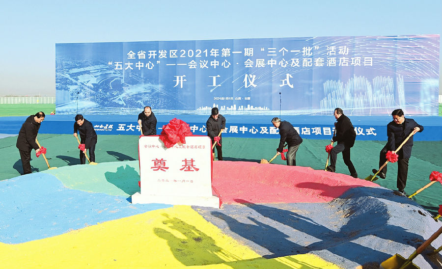 2021年1月1日,省委书记楼阳生等领导共同为山西综改示范区“五大中心”一期项目培土奠基。 本报记者李联军摄
