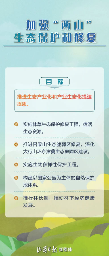 牢固树立绿水青山就是金山银山的理念,实施可持续发展战略,统筹山水林田湖草综合治理、系统治理、源头治理,以“两山七河一流域”为主战场,全方位全地域全过程开展生态环境保护,推动形成绿色发展方式和生活方式,为建设人与自然和谐共生的美丽山西奠定坚实基础。