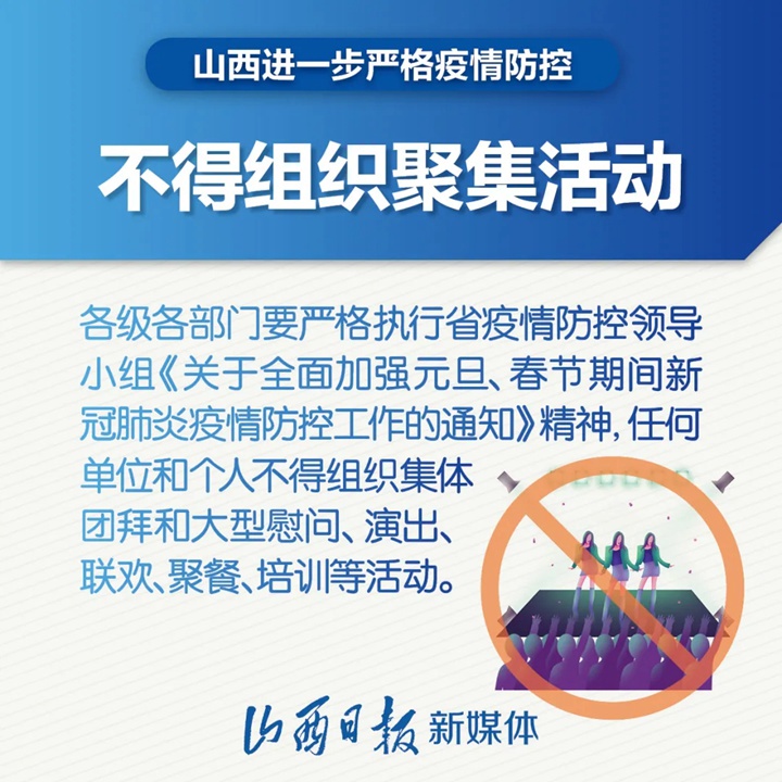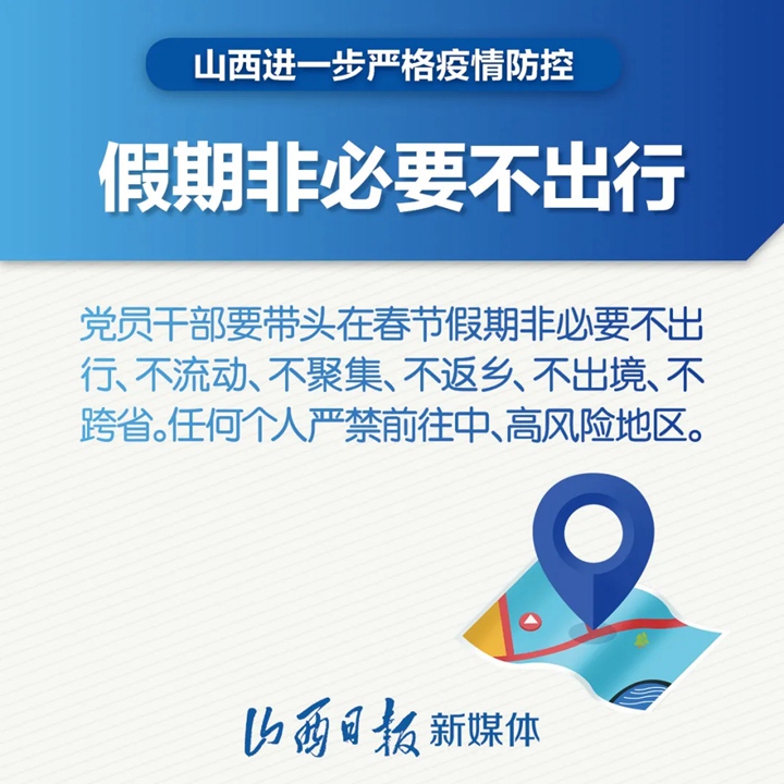 当前,正值疫情防控的关键时期,为切实扎紧扎牢防输入、防扩散、防反弹的防线,坚决打赢疫情防控阻击战,严防死守“山西阵地”,巩固我省疫情防控重大战略成果,保障人民群众身体健康和生命安全。经省疫情防控领导小组同意,决定从即日起,进一步严格疫情防控、管控措施。