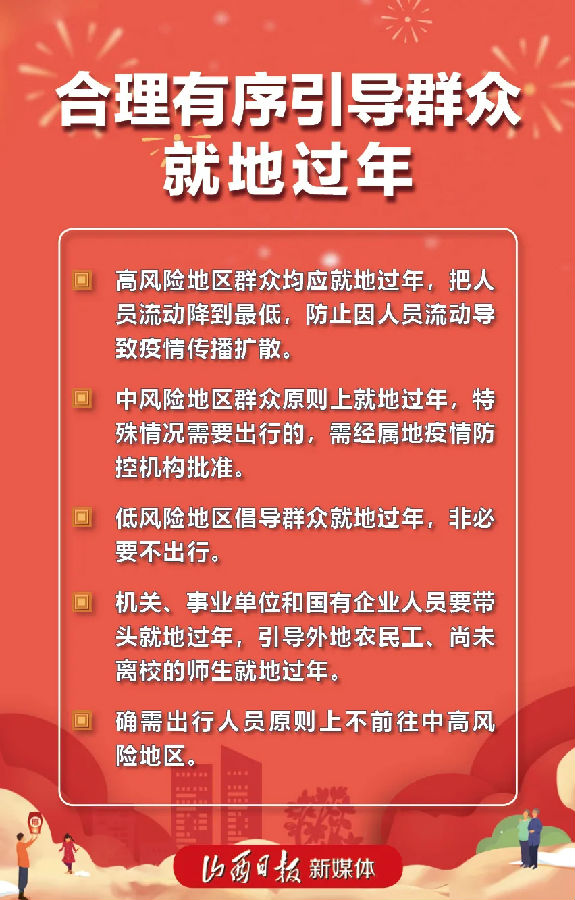 当前,境外新冠肺炎疫情持续蔓延,我国局部地区聚集性疫情和零星散发病例不断出现。中共中央办公厅、国务院办公厅印发《关于做好人民群众就地过年服务保障工作的通知》,提倡春节假期非必要不流动,有利于减少疫情传播风险。