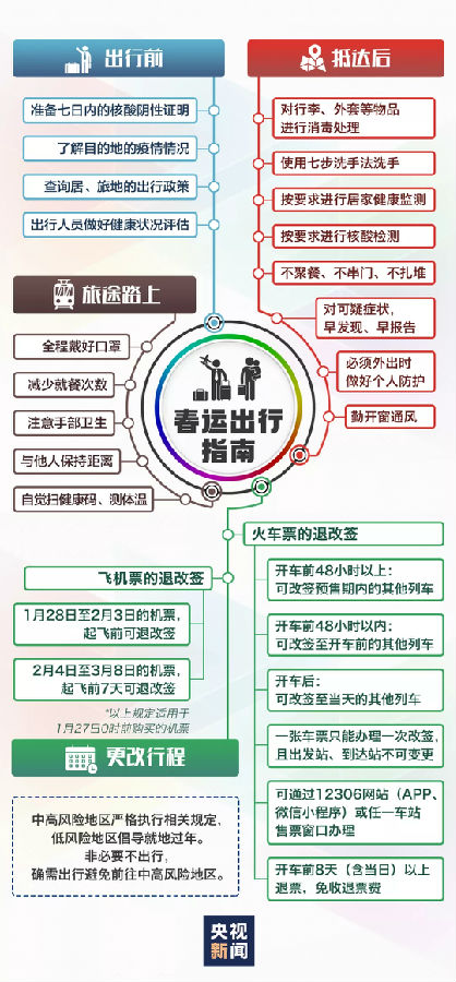 受到疫情影响今年春运出行,需要注意哪些事项?旅途中,如何做好自身防护?跟随一张图,一起来了解↓↓↓