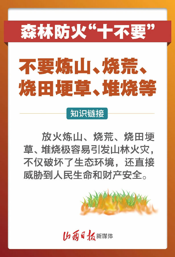 气温迅速回暖,野外风干物燥。春季是森林火灾高发期,要毫不松懈抓好森林防火工作。