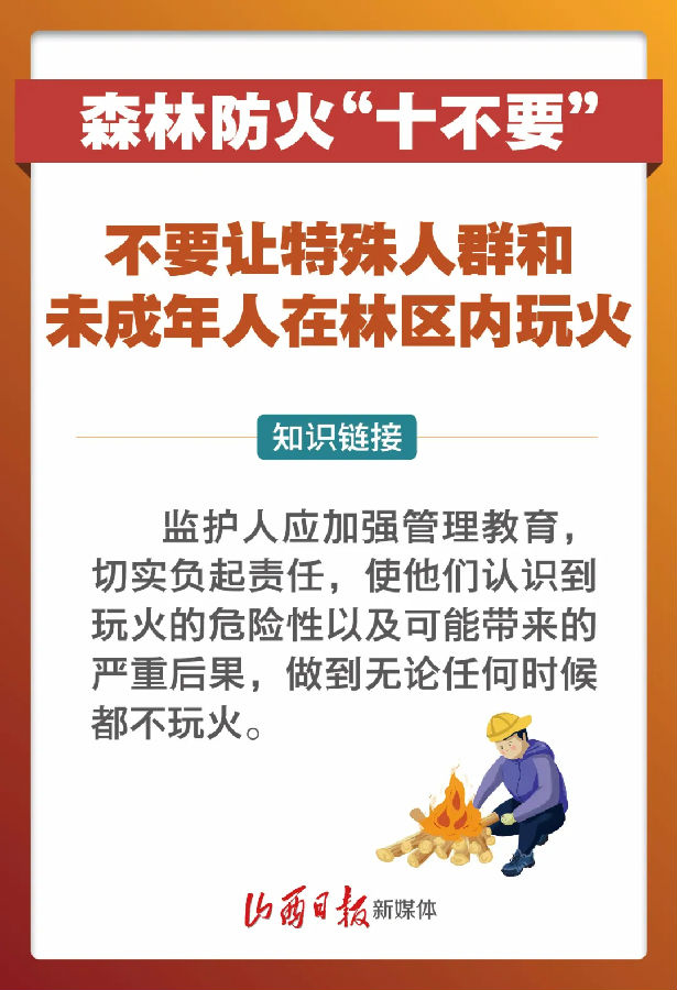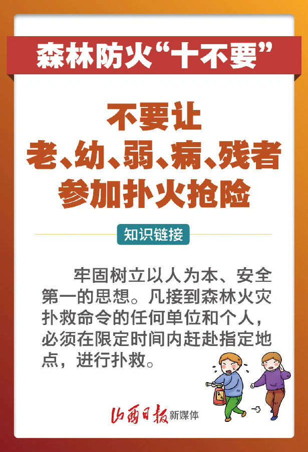 2月18日,省委书记楼阳生在省委全面深化“13710”工作制度推进会上指出,要层层压实森林防火责任,做好应急准备,严厉依法打击野外违章用火,强化防火宣传进村入户到人头,毫不松懈抓好森林草原防火工作,坚决守住不发生重特大火灾的底线。