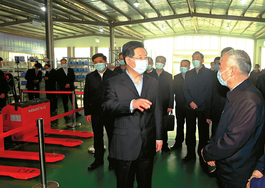 三月十五日,省委书记楼阳生在山西工程科技职业大学物流实训基地调研。记者李联军摄