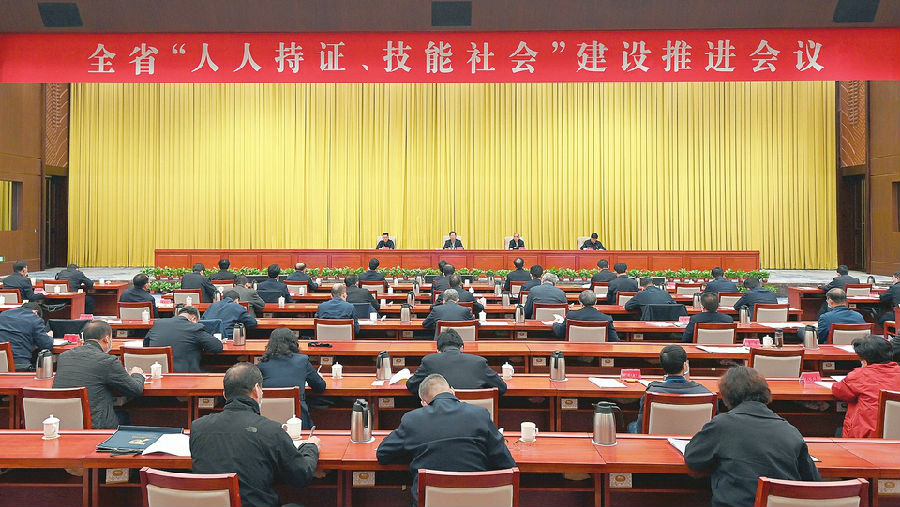 图为全省“人人持证、技能社会”建设推进会议会场。 本报记者史晓波摄