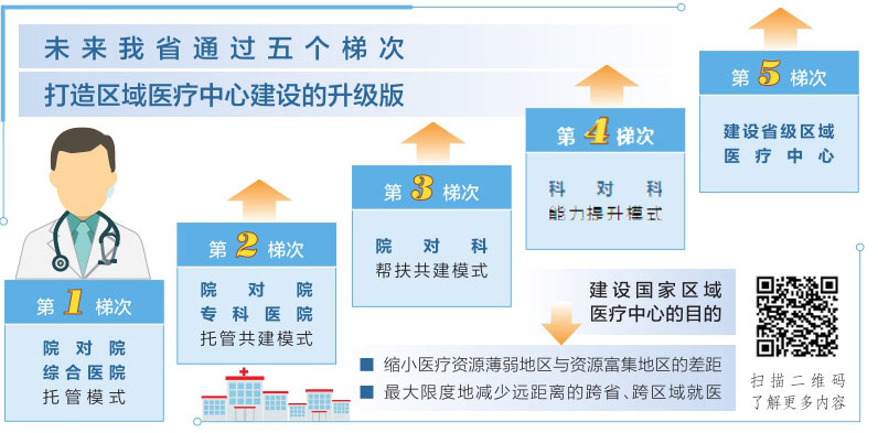 山西白求恩医院建设国家区域医疗中心,这是我省首个获批的国家区域医疗中心试点建设项目。3月12日,我省又和中国中医科学院西苑医院和中国医学科学院肿瘤医院分别成功签署了合作共建第二批区域医疗中心的协议。张波表示,未来我省还要通过五个梯次,打造区域医疗中心建设的升级版。第一个梯次就是目前山西白求恩医院和同济医院这个模式,叫“院对院综合医院的托管模式”。第二个梯次是“院对院专科医院托管共建模式”,就是刚刚签约的合作共建第二批区域医疗中心的省肿瘤医院和山西中医药大学附属医院。第三个梯次是“院对科帮扶共建模式”,就是我省依托华中科技大学协和医院,帮扶四所医院的五个专科。第四个梯次是“科对科的能力提升模式”,通过北京天坛医院帮助省人民医院提升神经系统疑难复杂病的诊疗水平。第五个梯次就是省级的区域医疗中心,我省选择3到4个三甲医院建设省级区域医疗中心。“总的来说,就是通过这五个梯次,推动区域医疗中心的建设,提升全省的医疗服务能力。”张波说。