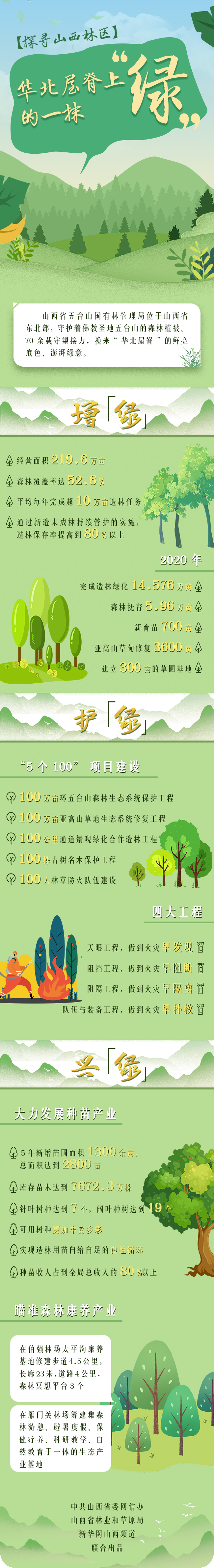 山西省五台山国有林管理局位于山西省东北部,守护着佛教圣地五台山的森林植被。70余载守望接力,换来“华北屋脊”的鲜亮底色、澎湃绿意。