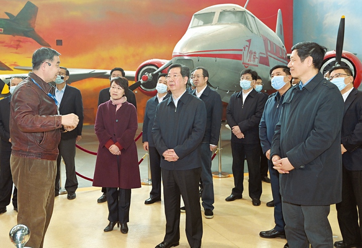 四月一日,省委书记楼阳生在北京航空航天大学考察,参观航空航天博物馆。记者李联军摄