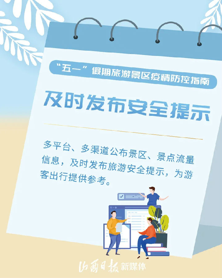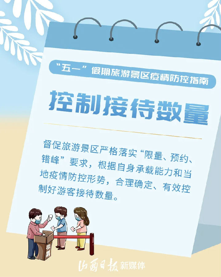 “五一”假期开启,人员流动增加,病毒传播风险加大,要毫不放松常态化疫情防控措施,不能心存侥幸、松劲懈怠。那么,假期旅游景区如何做好疫情防控工作?六张海报请收好。