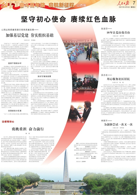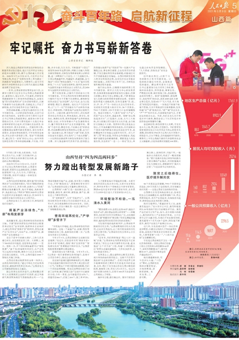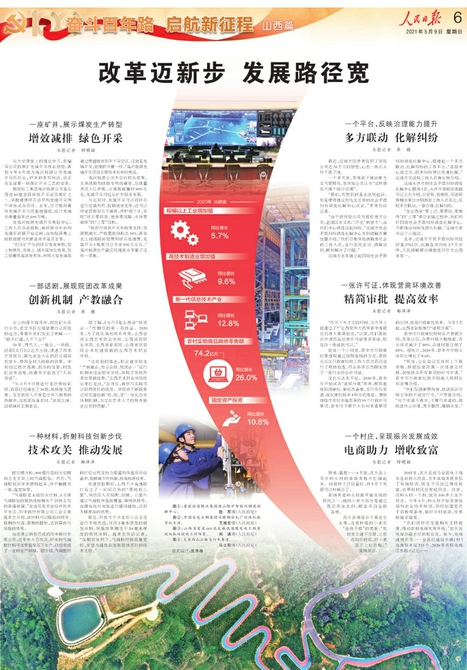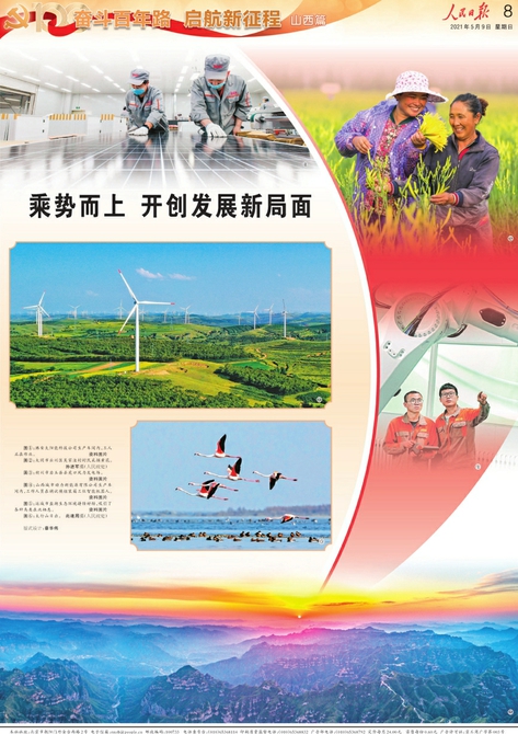 5月9日,人民日报5—8版“奋斗百年路启航新征程·山西篇”专版报道了山西省委团结带领全省人民,认真学习贯彻习近平总书记视察山西重要讲话重要指示,把转型发展蹚新路作为工作指南和逻辑起点,全面实施“四为四高两同步”总体思路和要求,以新气象新作为创造新业绩,在新起点上开创了新局面,在历史性赶考中交出了新答卷。