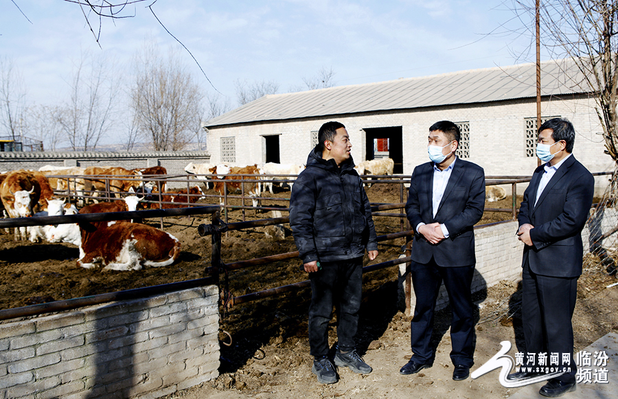 图为2020年12月25日,在临汾市襄汾县众兴园养殖专业合作社,中国农业银行襄汾县支行工作人员在了解“惠农E贷”使用情况。李现俊 摄