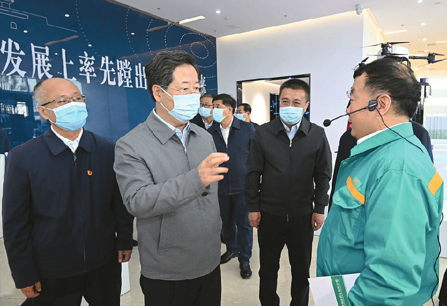 五月二十四日,省委书记楼阳生在大同经济技术开发区创新展示厅,听取生物医药产业发展情况介绍。本报记者史晓波摄