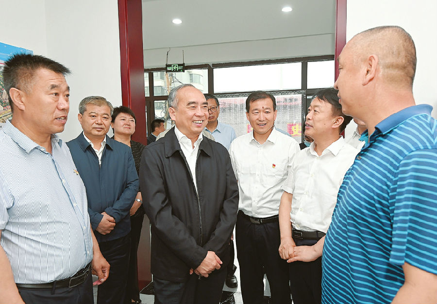 六月十六日,省委书记林武在古交市屯兰街道木瓜会社区党群服务中心,了解社区党建和基层治理工作,并与正在办理居民养老保险业务的居民亲切交流。记者史晓波摄