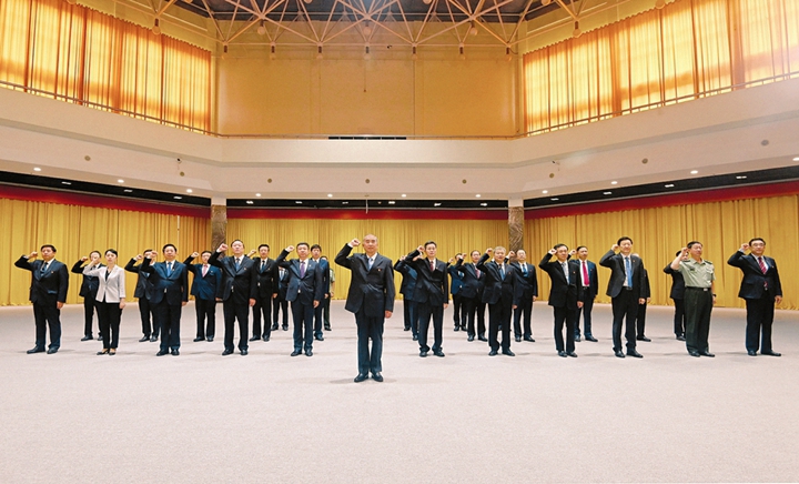 参观结束后,面向鲜红的党旗,举起右拳,林武带领党员领导同志重温入党誓词,庄严宣示牢记初心使命、持续接力奋斗,奋力谱写全面建设社会主义现代化国家山西篇章的坚定决心和坚强信心。