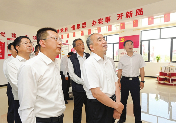 七月八日,省委书记、省人大常委会主任林武在阳高县龙泉镇花苑村党群服务中心调研乡村振兴和基层党建工作情况。记者史晓波摄
