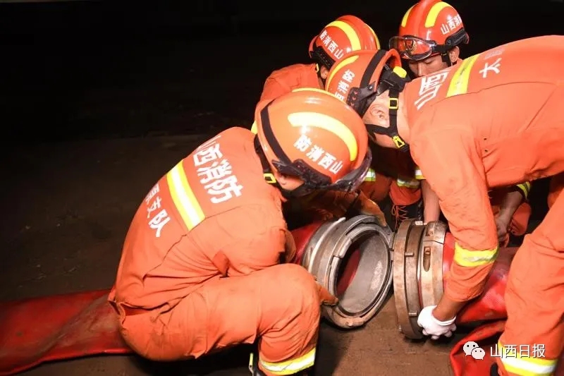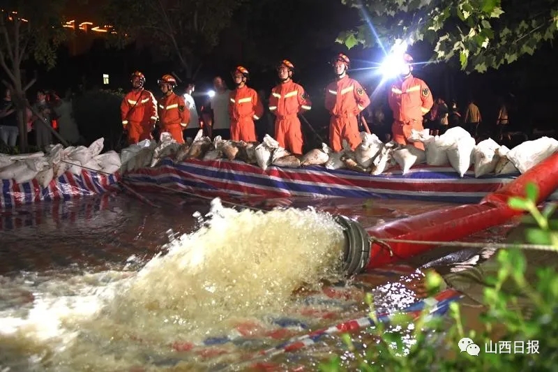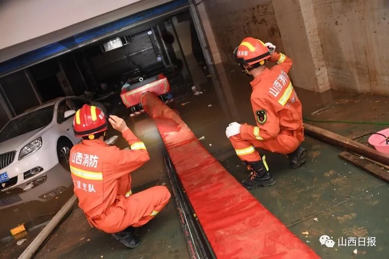 7月23日19时,山西消防救援队接到命令后,立即派遣救援力量赶赴万通福瑞城小区进行侦察。在察看了地下车库的受灾情况后,立即与当地市政、街道等有关部门协商,共同制定排涝方案,同时派遣包括大功率城市排水车在内的3车14人,对该小区地下车库连夜进行排涝作业。消防指战员们克服暴雨突袭、高温湿热、蚊虫叮咬等不利因素,不眠不休连续奋战,截至7月24日9时已累计排水12000吨。