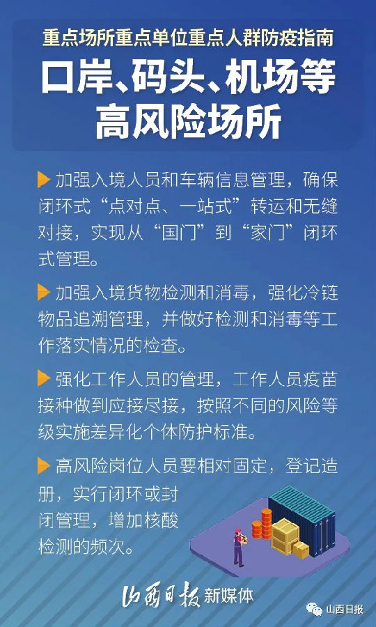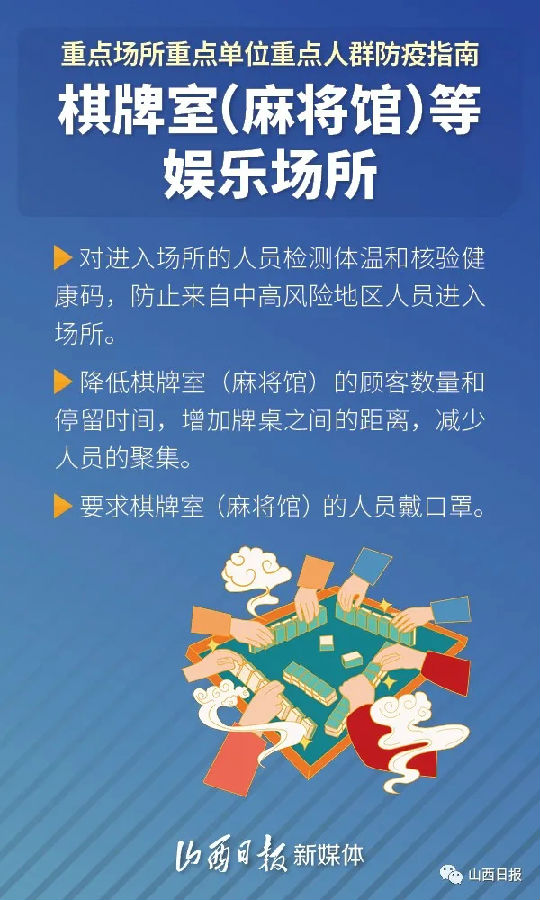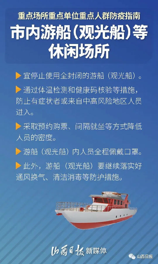针对当前疫情防控形势和人群流行特征,国家卫生健康委会同有关部门对戴口罩指引和重点场所重点单位重点人群防护指南进行了修订,形成了《重点场所重点单位重点人群新冠肺炎疫情常态化防控相关防护指南(2021年8月版)》,其中对码头、口岸、棋牌室(麻将馆)、游船(观光船)等各类场所和单位的卫生防护提出新的要求。