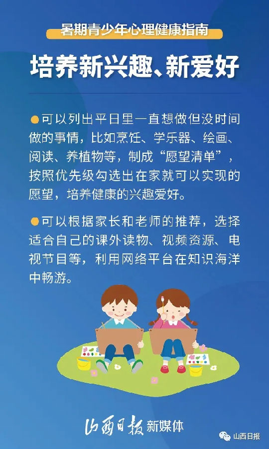 当暑假碰上疫情,不少儿童青少年只好“宅”在家里,除了完成作业、复习功课,其余时间大多与电子产品为伴。这很容易对孩子们的心理健康造成不良影响。那么,对孩子们来说,疫情期间该如何增强心理“免疫力”呢?
