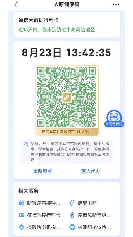 近日,针对当前严峻复杂的疫情防控新形势,山西省新冠疫情防控工作领导小组办公室及时更新了山西“健康码”相关功能,实现山西“健康码”与国家“通信大数据行程卡”融合,实时动态展示“健康码”出示时间,提升防伪能力。怎样操作?一起了解一下……
