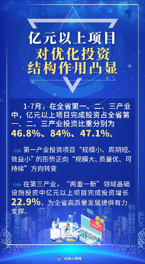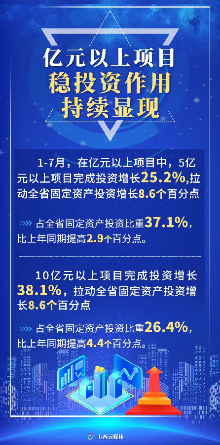 近日,山西省统计局发布我省1-7月亿元以上大项目投资情况。1-7月,全省亿元以上大项目投资成为我省投资增长的主引擎。