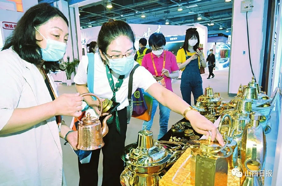 “这次参展我们带来了高端定制铁壶,主要是想借展会平台寻找电商平台及大型企业合作。”在山西展区文化产品专区参展的晋城市晋艺坊文化发展有限公司总经理雷晋峰向记者表达了来意。