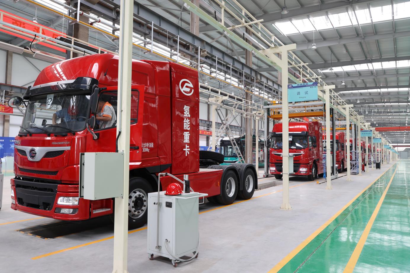 正在现场忙碌的项目副总指挥陈志峥介绍:“项目主要涉及氢燃料电池动力系统及氢燃料商用车零部件生产,至去年10月底,已完成固定资产投资5.5亿元。目前,总装车间进入试生产阶段,配套加氢站已竣工,氢动力车间钢结构主体安装完成。”