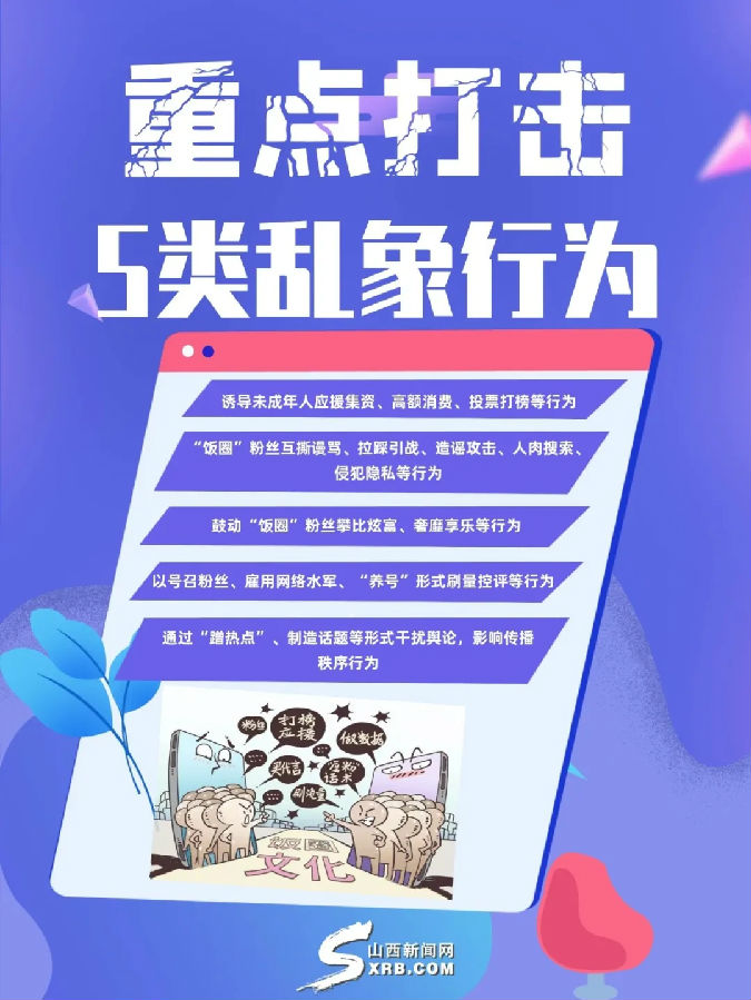近日,中央网信办针对“饭圈”粉丝群体对未成年人身心健康造成不利影响的问题,在全国范围内开展“清朗•‘饭圈’乱象整治”专项行动。
